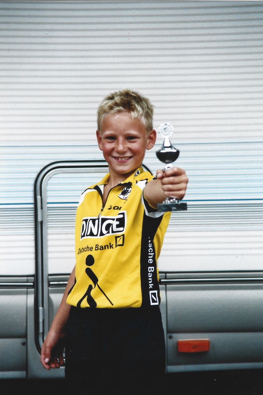 Alles begann mit etwas so Einfachem wie Sprünge auf dem Spielplatz zu bauen und mit Freunden durch die Straßen zu jagen. Als mich mein Vater mit etwa sieben Jahren zum ersten Mountainbike-Training bei Licht Verzet brachte, war schnell klar: Das ist mein Sport. Ich begann früh mit Rennen, gewann viele Wettbewerbe und startete bald bei nationalen Events. Damals war alles von Freude und Talent getragen – kein strukturiertes Training, nur Leidenschaft, gutes Fahrgefühl und Spaß am Fahren. Diese Freude führte ganz natürlich zu Erfolgen.